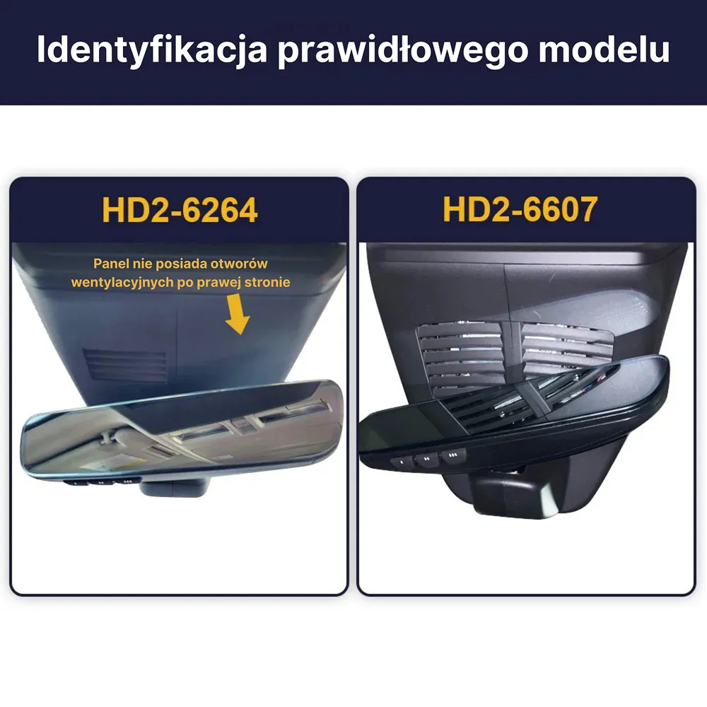 WAŻNE! Przed złożeniem zamówienia upewnij się, że kształt panelu fabrycznego za lusterkiem w Twoim samochodzie jest zgodny z tym zdjęciem: