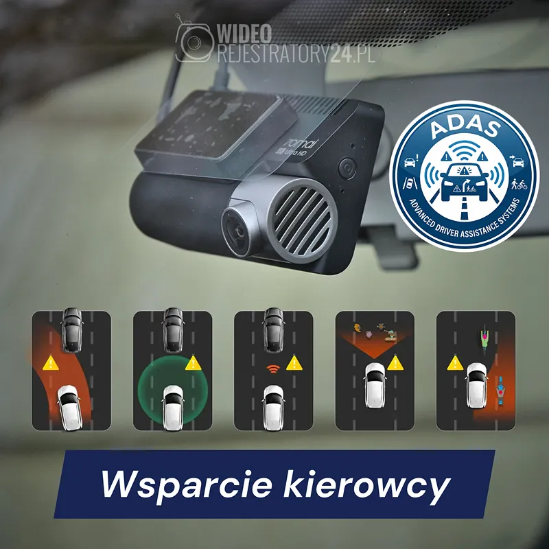 Wideorejestrator 70mai 4K A800SE to coś więcej niż zwykłe źródło nagrań – to aktywne wsparcie Twojego bezpieczeństwa na drodze. Dzięki rozbudowanemu systemowi ADAS (Advanced Driver Assistance Systems), kamera w czasie rzeczywistym analizuje sytuację przed maską pojazdu, działając jak czujny asystent nigdy się nie męczy. Urządzenie emituje czytelne ostrzeżenia wizualne i dźwiękowe, pomagając Ci uniknąć typowych zagrożeń w ruchu miejskim i na trasie.