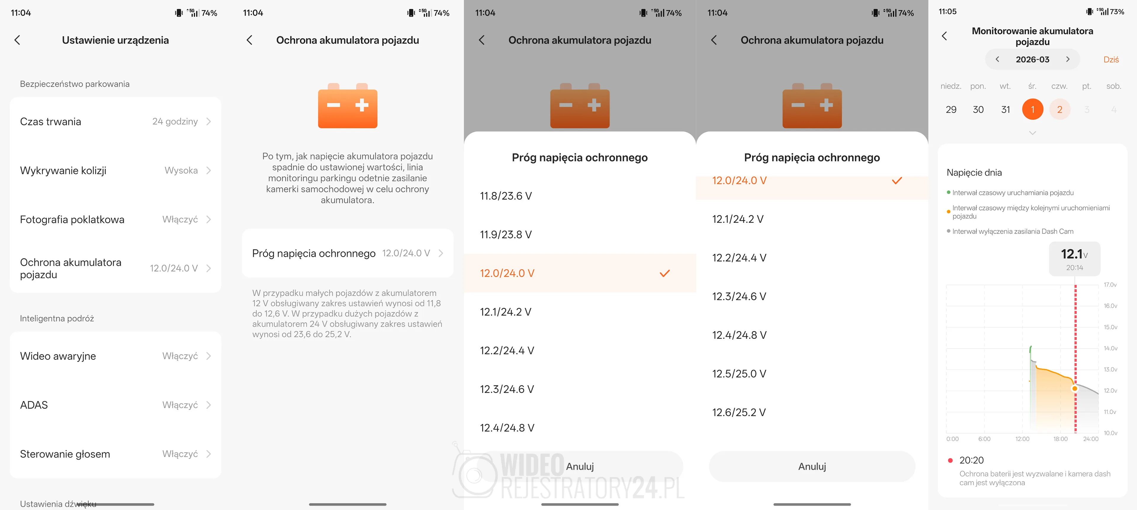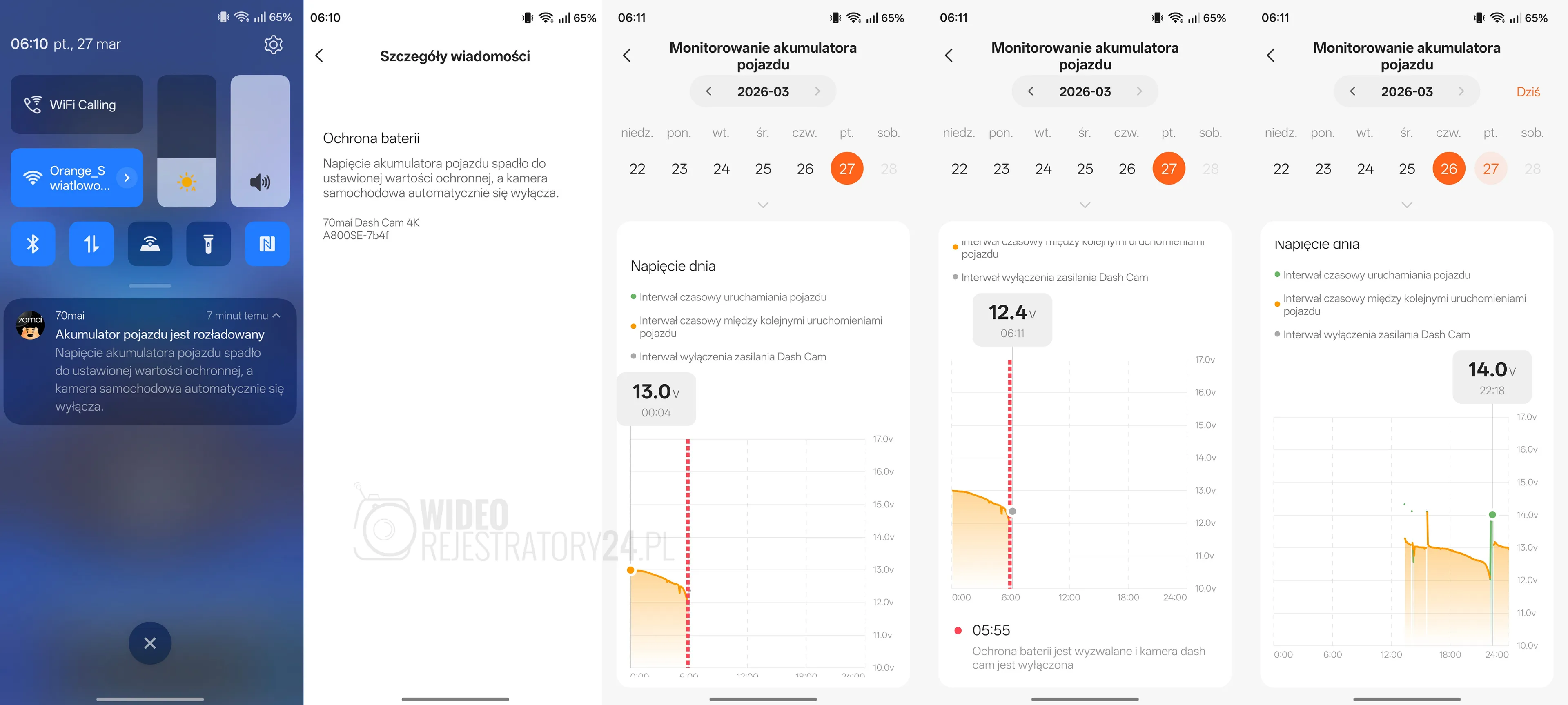 - Kontrola kondycji akumulatora: system pozwala na zdalną weryfikację napięcia w instalacji elektrycznej pojazdu. Dzięki precyzyjnym ustawieniom zabezpieczającym, wideorejestrator automatycznie zakończy pracę, jeśli poziom naładowania spadnie poniżej bezpiecznej granicy.