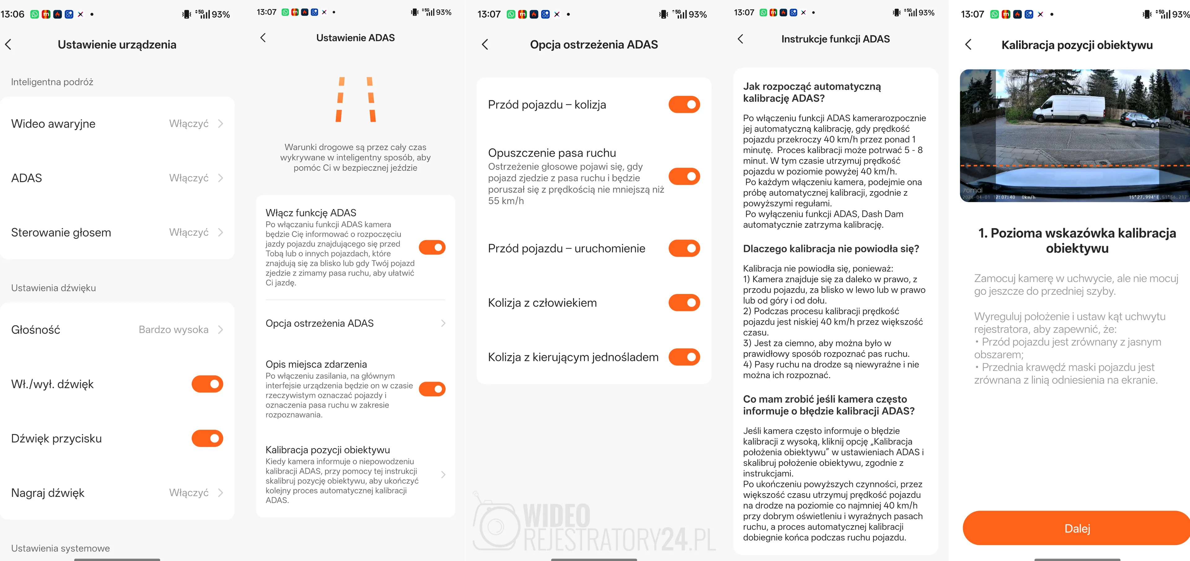 Ustawienia funkcji wsparcia kierowcy ADAS. Kliknij aby powiększyć