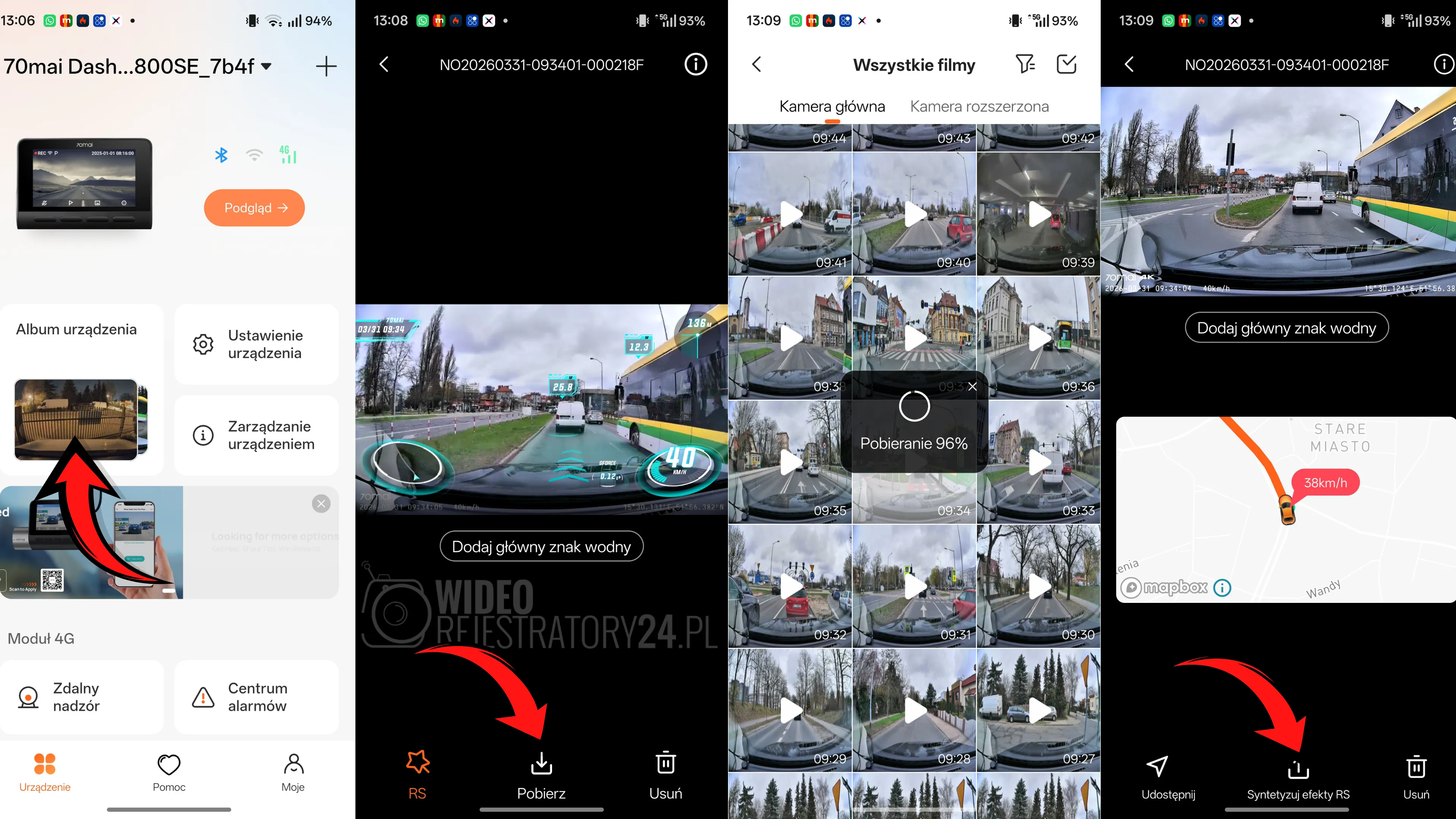 - Błyskawiczny dostęp do nagrań – przeglądaj zapisane filmy i zdjęcia oraz pobieraj je bezpośrednio do pamięci telefonu, aby szybko udostępnić je policji lub ubezpieczycielowi.