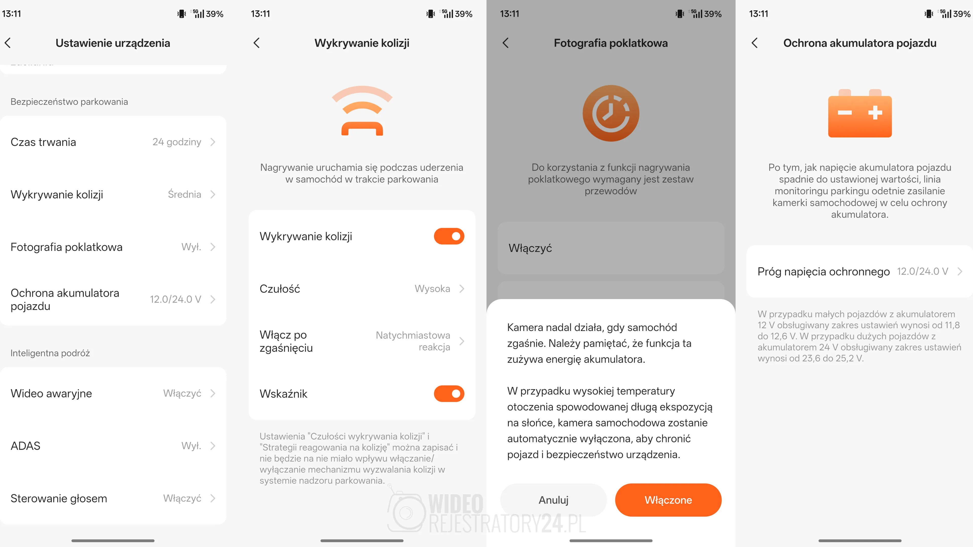 - Intuicyjna konfiguracja – zmieniaj parametry nagrywania, czułość czujnika przeciążeń czy ustawienia trybu parkingowego za pomocą kilku kliknięć.