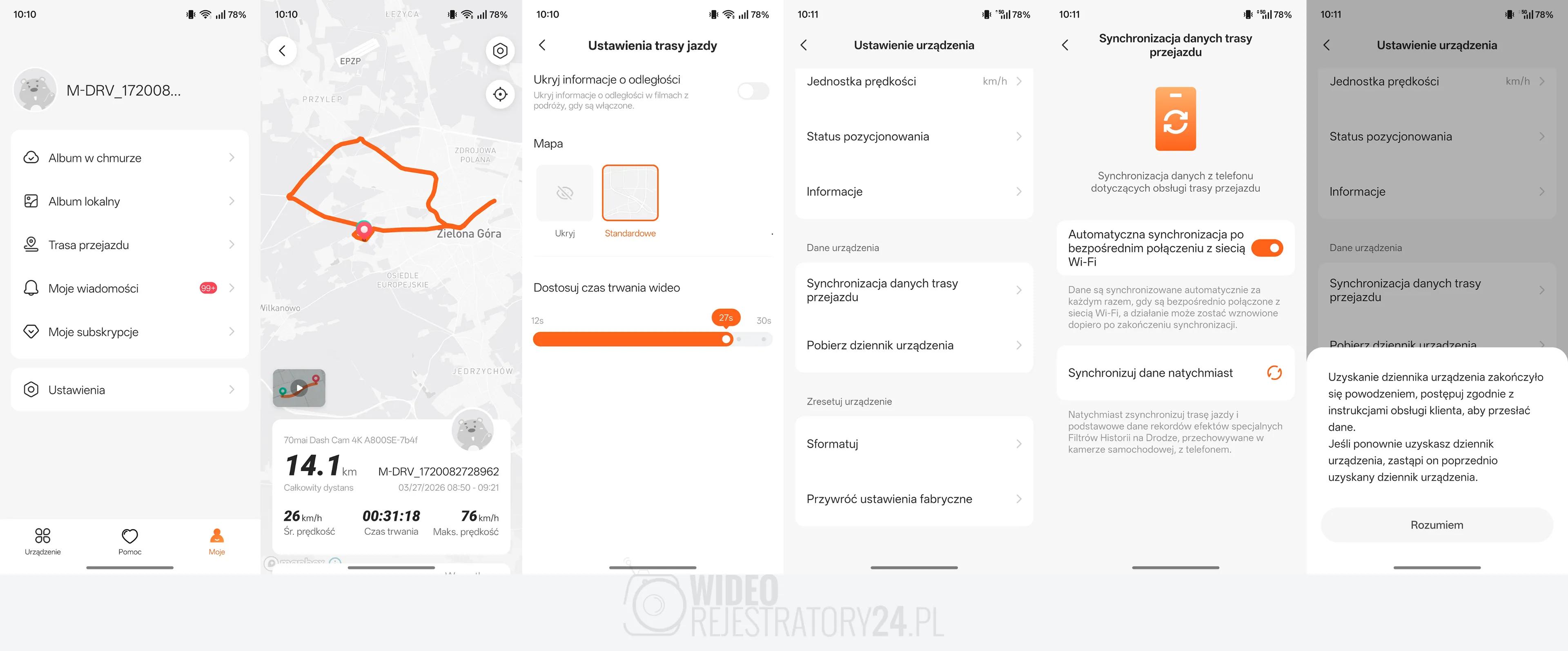 Efekty RS w aplikacji 70mai. Kliknij aby powiększyć