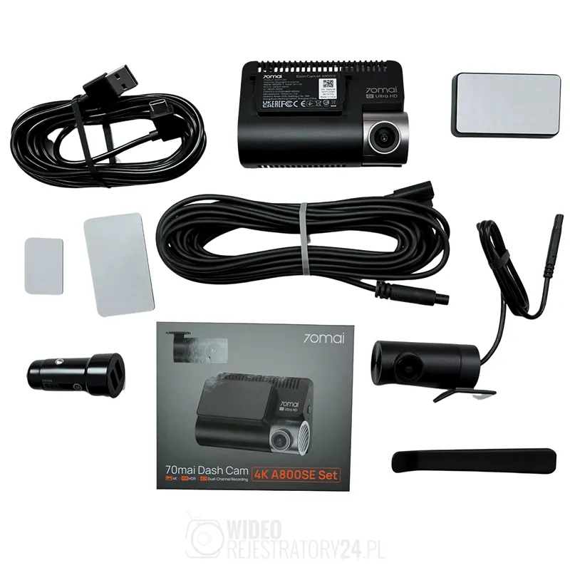 Zobacz unboxing, przedstawiający zawartość zestawu kamery samochodowej 70mai 4K A800SE Dual Set w formie filmu: